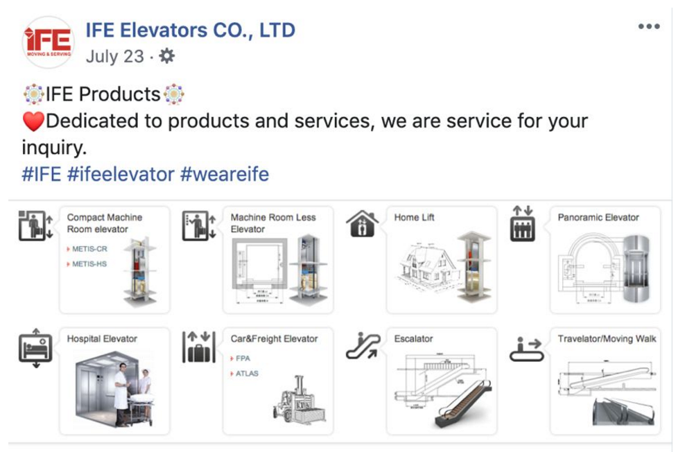 為了能帶來更多精準詢盤,深圳拓撲團隊與快意電梯合作開始以來,Facebook運營人員多次前往總部,詳細了解產品特性和企業業務模式后,才確定快意電梯的Facebook代運營方案。