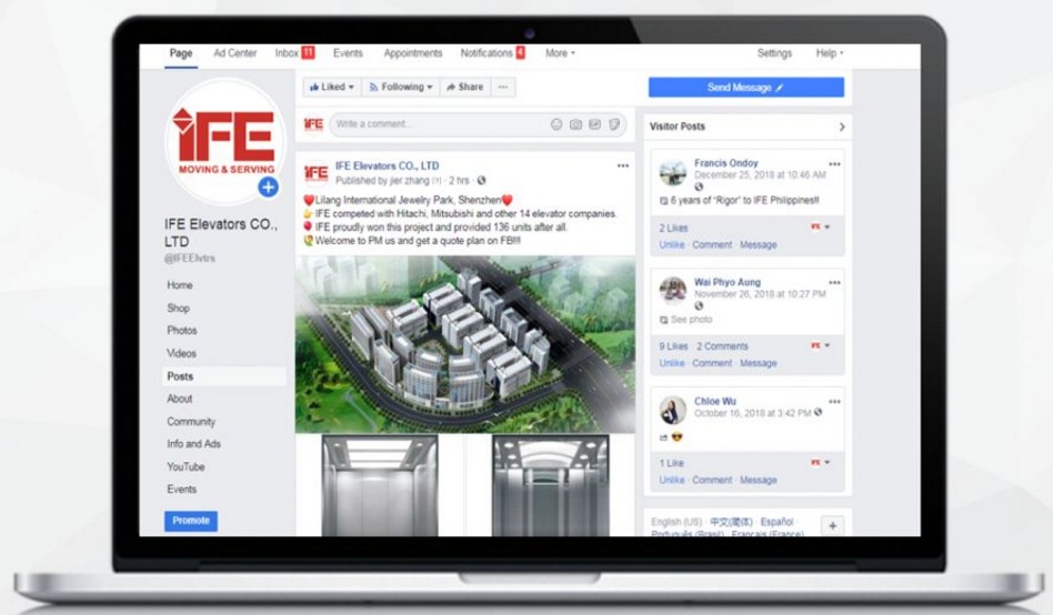 4.為快意電梯員工提供Facebook培訓,企業內部員工學會操作,以確保對詢盤回復及時。