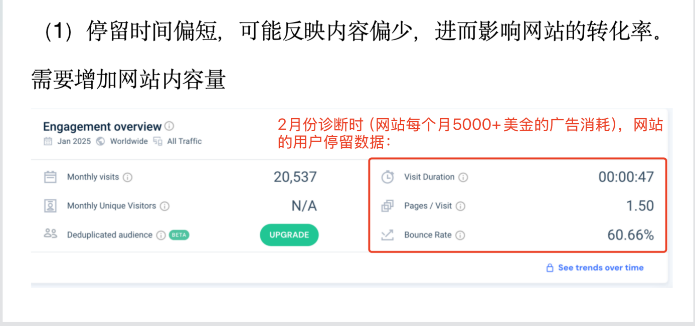 優化前:20251月,平均停留時間47秒,跳出率超過60%